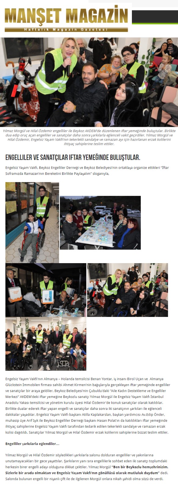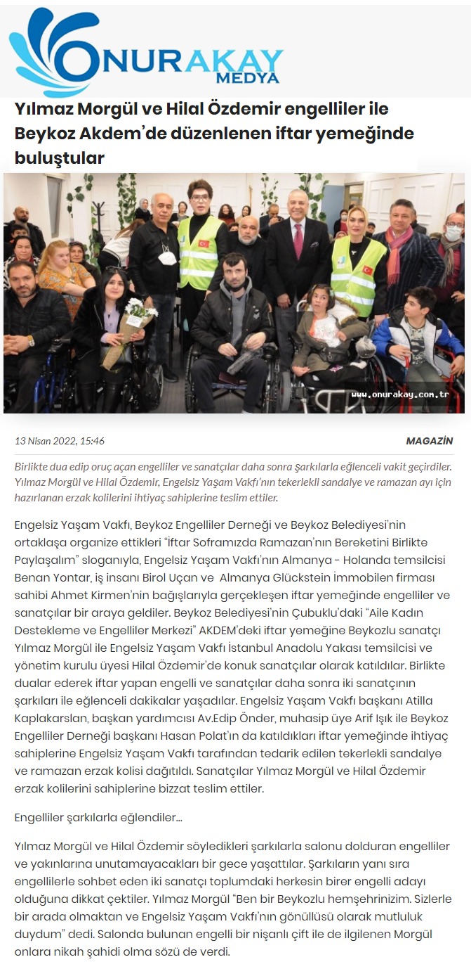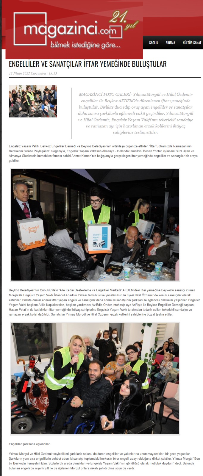 Engelsiz Yaşam Vakfı + Beykoz Belediyesi + Beykoz Engelliler Derneği işbirliği İftar Yemeği Organizasyonu yaptık